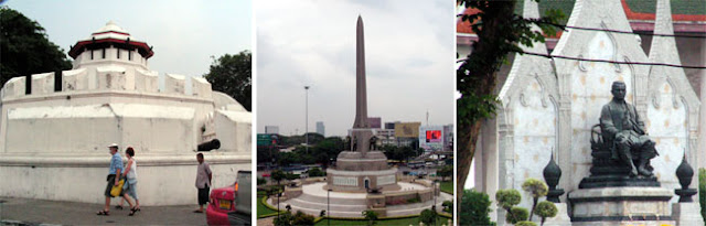 The attractions besides the main roads (From left): Phrakan Fortress, Victory Monument, and Statue of the King.