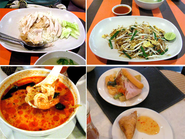 Clockwise from upper left: Thai chicken rice, noodle, western food, and tomyam. Thai tomyam is in "must try" category for us.