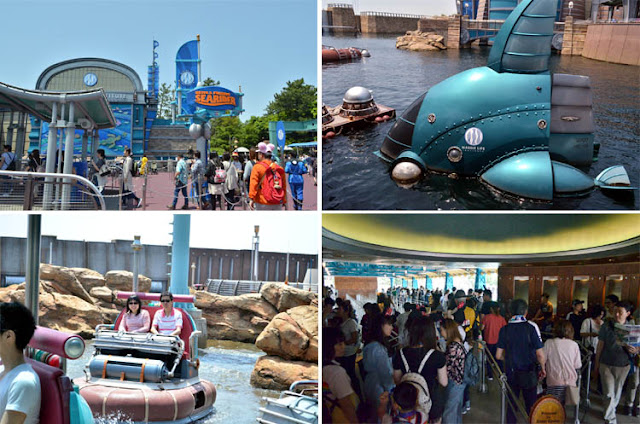 SeaRiders was simply amazing (Upper left). We queued for around 30 minutes to experience an adventure with Nemo and friends in a submarine (Upper right). The great 4-D experience- strong wind, splashing water, and the cabin movement make it the best ride on our list. After the ride, we went to Aquatopia and queued for less than 10 minutes (lower right) to board onto a water craft. Aquatopia is located next to SeaRider.